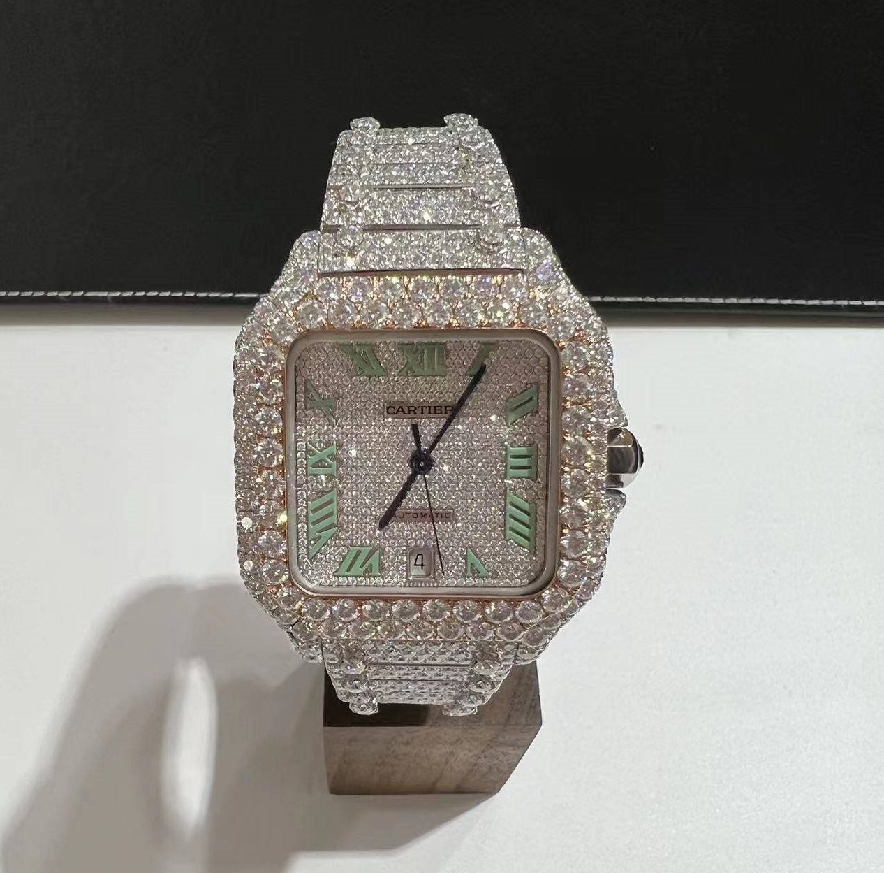 Iced Out VVS Moissanite Diamond Cartier Bust Down Luxury Watch (Pass Diamond Tester)